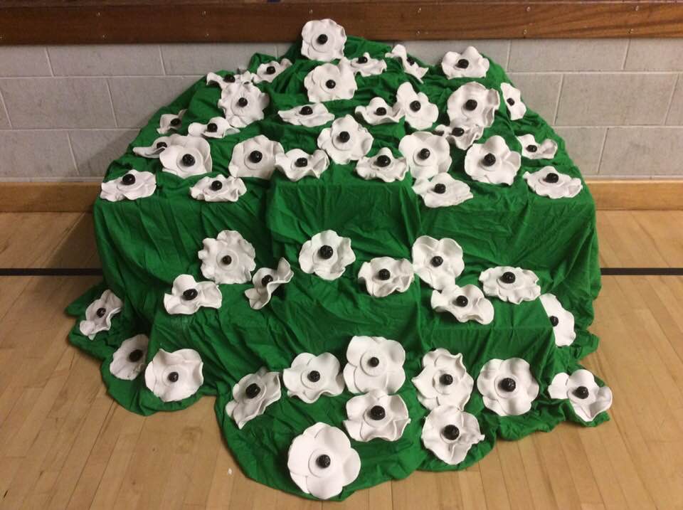 The art department had won a Carson bursary for a wonderful legacy project, inspired by the 2018 Armistice day display of ceramic poppies. Melanie Skelcher and students set about creating a field of white ceramic poppies symbolising peace. The work was invested in the 25th year, with the kiln on full power for days and days, with the long term plan of ‘planting’ the field in our grounds when the new building is in place and the grounds reconfigured.