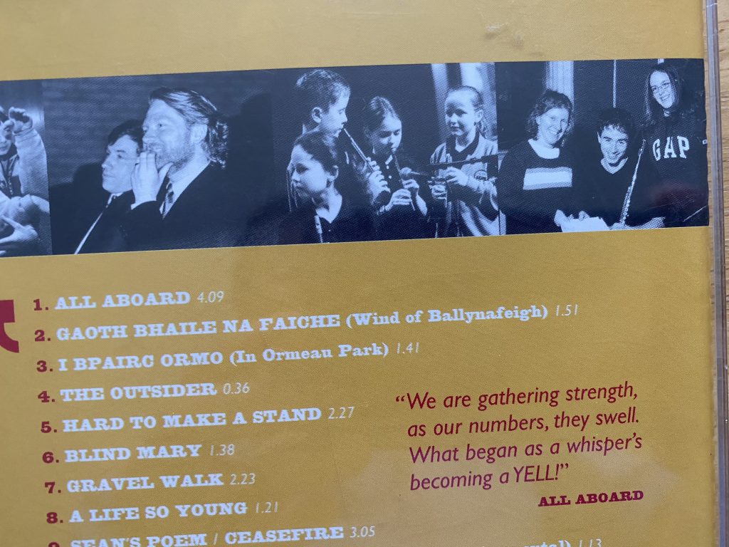 Many years before, at the ‘All Aboard’ concert in the Waterfront Hall, a wonderful collaboration among all the Integrated schools, a very young Shimna student, the same Ria Maguire, had stood alone on the enormous stage to sing ‘Light at the End of the Tunnel’.