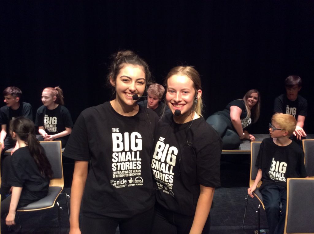 2017 came and an anniversary shared among the whole Integrated community. It was the 35th anniversary of the founding of the very first Integrated school, Lagan College, and that made it the 35th anniversary of Integrated education. Shimna was involved in a whole range of celebratory projects. First of all, a book was commissioned, “There Were no Desks”, a title commemorating the experience of every group of founding parents when they realised they just had to do it all themselves! The book was full of interviews with the people who made Integration happen in those early days, and of course Kevin, as the first Development Officer of the reconstituted NICIE and then founding principal of Shimna, was one of the contributors. He also served on the editing committee, a huge piece of work getting ready for publication. Alongside this came the preparations for an evening of celebration at the Ulster Museum, with Kevin as the compere. Our drama students, singers and musicians and those from Lagan were centre stage in a stunning music and drama performance, ‘Big Small Stories’ celebrating what Integration means.