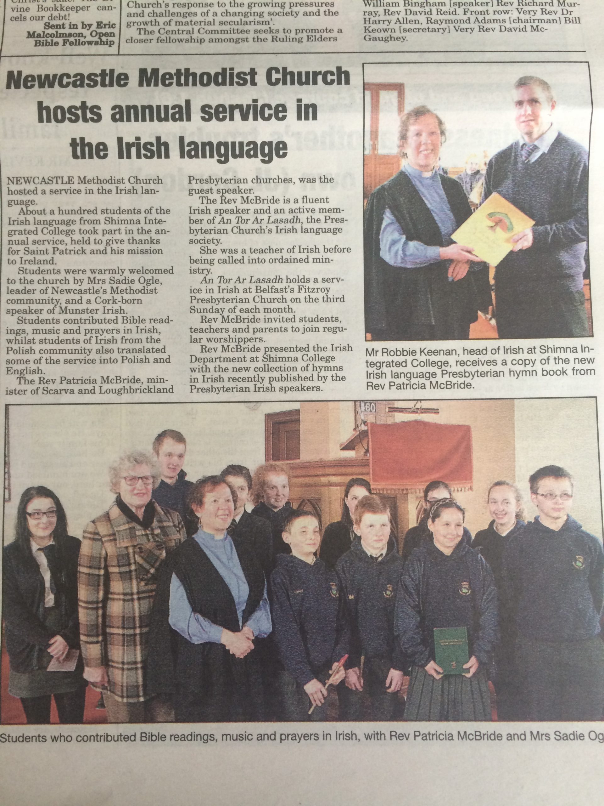We accepted invitations to attend an adult baptism in Ballynahinch Baptist Church, a baptism in the sea at Annalong, an invitation to sing in Russian at the Women’s World Day of Prayer, to attend the Flower Festival in the Catholic Church, the Christmas Tree Festival in the Presbyterian Church, and held our St Patrick’s Day Service in the Irish language in the Methodist Church, led each year by an Irish speaking Presbyterian minister.