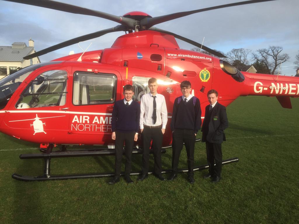 Another significant local charity is the Air Ambulance, an increasingly important element in our healthcare and emergency rescue system in Northern Ireland. The best thing about fundraising, apart from supporting the service, is that we got to host a visit from the helicopter when they came to collect the cheque.